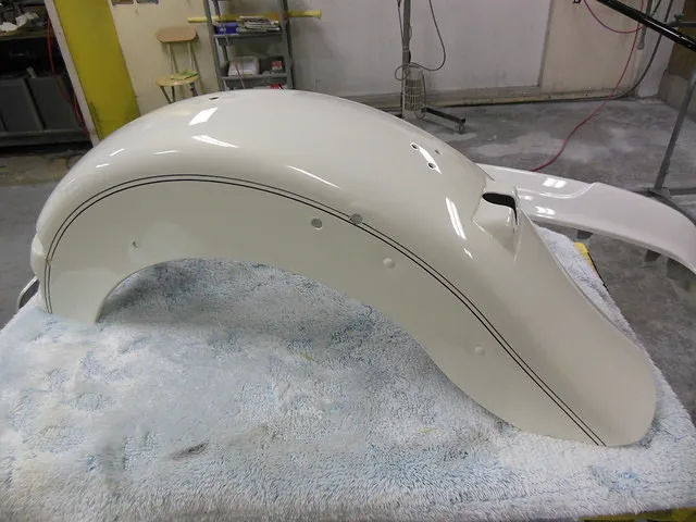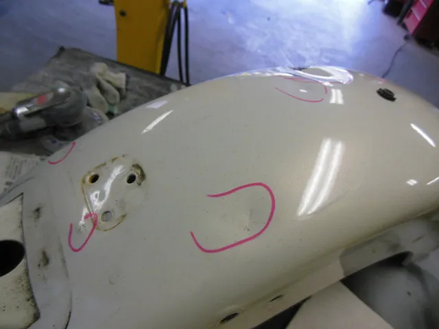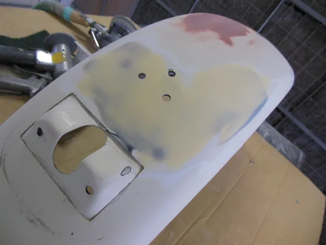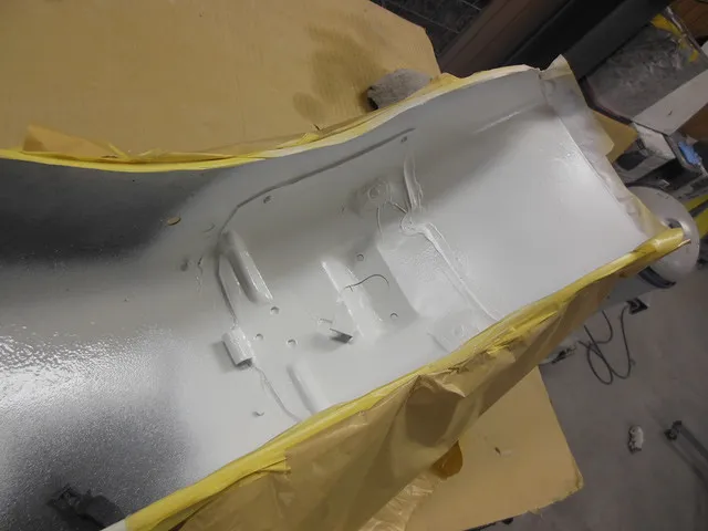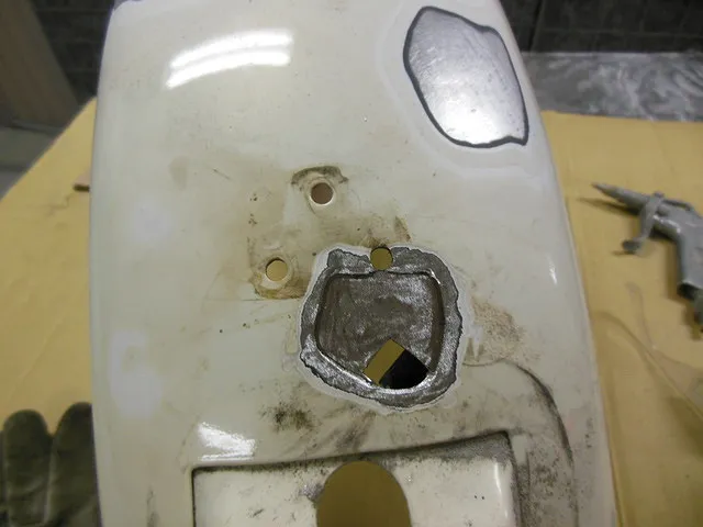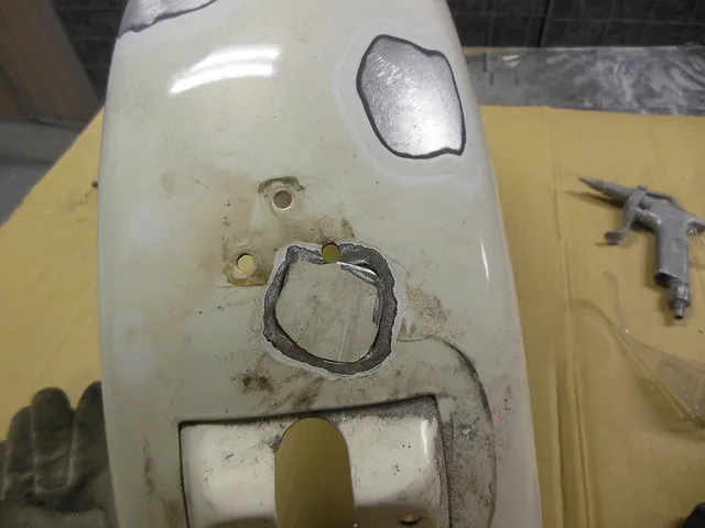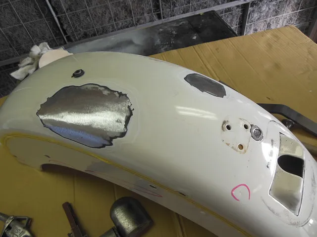 パテを薄く塗って、乾燥後研ぎ作業。表面を整えます。