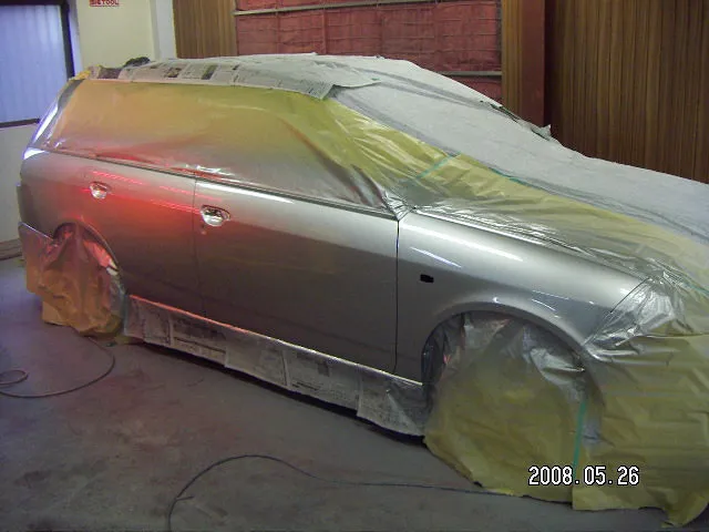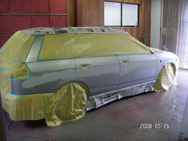 サフェーサーを入れて、乾燥後研ぎ、全体に足付け作業後、マスキングをしたところです。