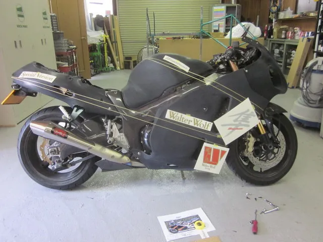 ラインを入れるためにもう一度全体足付けした処理をした状態で一度組み付け、ライン・デカール位置を決めていきます。