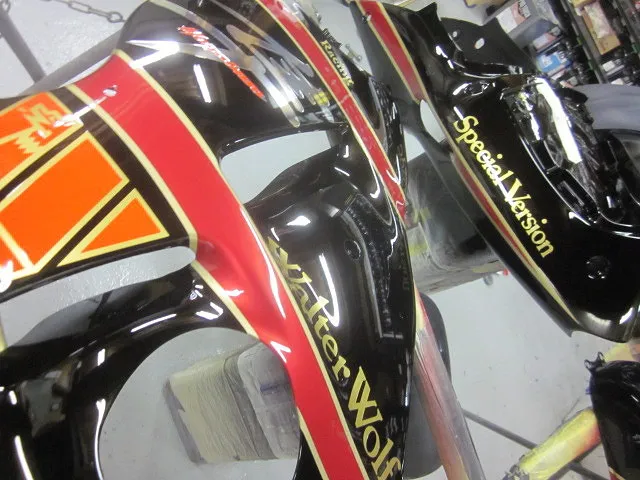 ラインとデカールが終わったらクリヤでパッキング。つやつやに仕上げます。