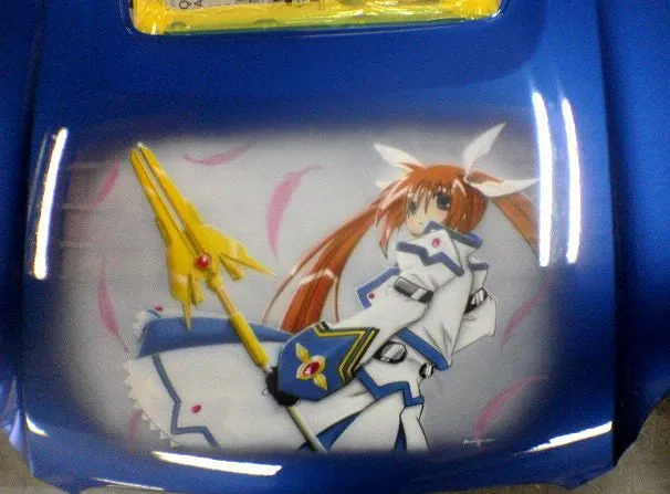 セルシオのボンネットにナノハ。