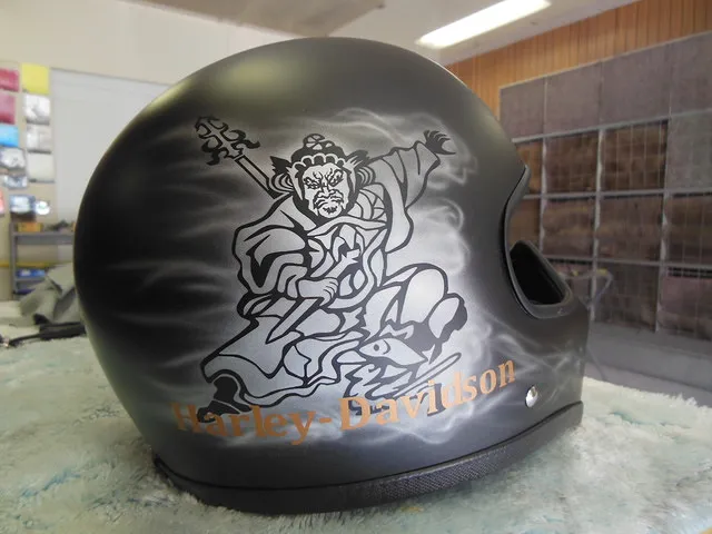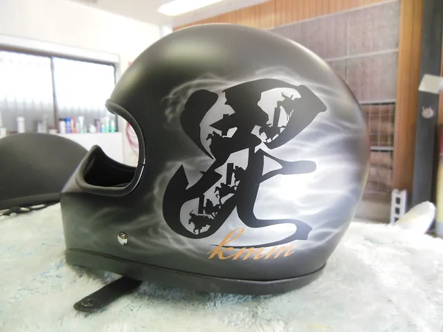 こちら反対側は、お客様のクラブのシンボルをデータ化してカッティングシートに切り出し同じように周りをフレイムスでエアブラシ。